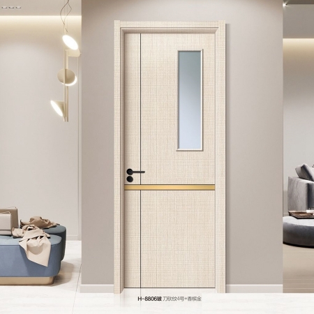 普达无漆木门系列-H-8806(玻)刀砍纹4号+香槟金