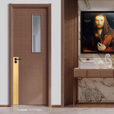 普达无漆木门系列-H-8805(玻)刀砍纹2号+香槟金