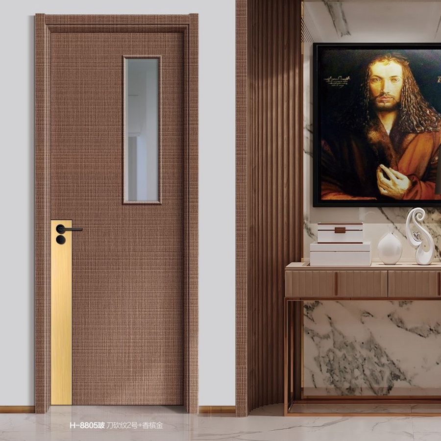 产品型号:普达无漆木门系列-H-8805(玻)刀砍纹2号+香槟金