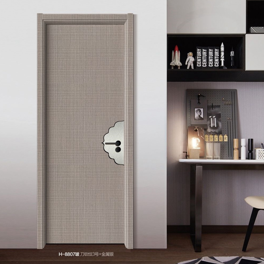 产品型号:普达无漆木门系列-H-8807(玻)刀砍纹3号+金属银