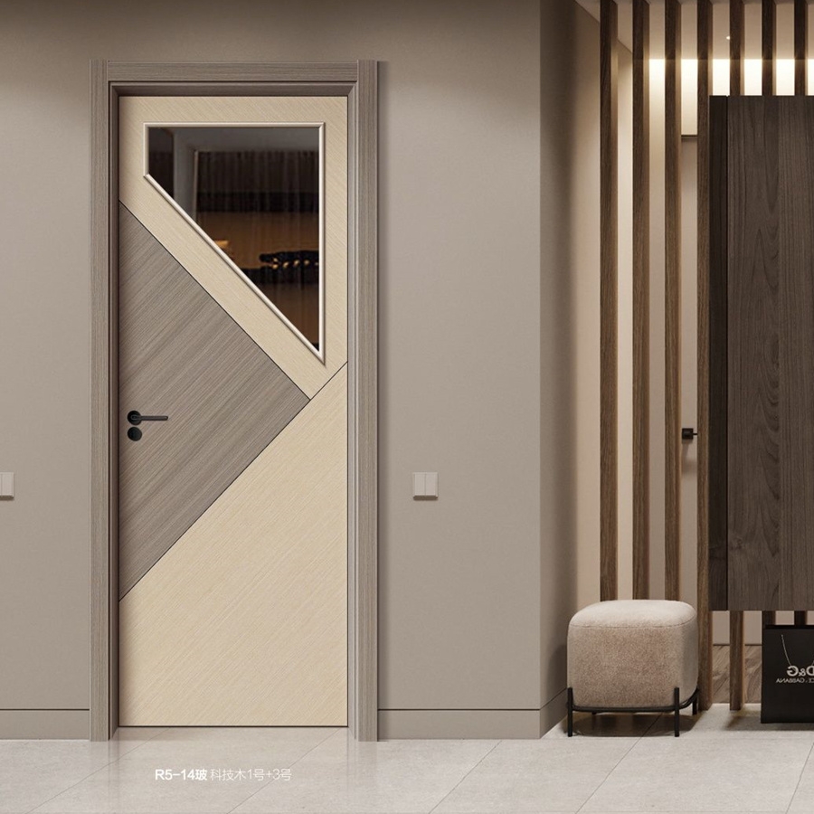 产品型号:普达无漆木门系列-R5-14(玻)科技木1号+3号